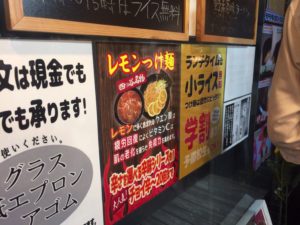 食券タイプの様です。上の方にあるのが今回食した「レモンつけ麺」ですね。