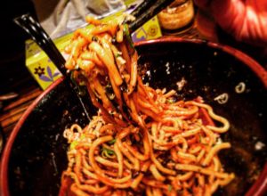 お酢を少量かけてみると油そばの濃味が、すこしさっぱり目な味に変化しました!