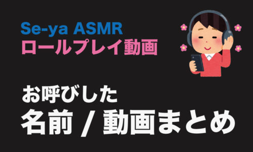 ご覧頂きありがとうございます。『Se-ya』です。 Se-ya ASMRでは「お前/きみ/あなた」などの2人称のみならず、固有名詞を呼ぶシチュエーションボイス作品も制作しています。呼び名は、動画のコメント欄などで頂いたリ … 続きを読む Se-ya ASMRの「名呼び作品」まとめ【ロールプレイ/シチュエーションボイス】