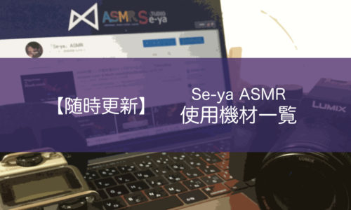 ご覧頂きありがとうございます。『Se-ya』です。 「ASMRtistを目指したい方」「ASMR撮影ってどんな機材を使うか気になる方」へ向けて、Se-ya ASMRで使用している機材の一覧を簡易的に紹介しています。詳細を … 続きを読む Se-ya ASMRの撮影&編集機材まとめ【最新情報】カメラ/録音機/PCなど