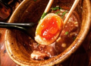 スープに浸かってる煮卵は煮具合が絶妙で、黄身のトロトロさ・白身のプルプルさが最高。