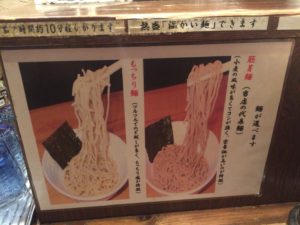 着席して、食券を渡す時に「もちもち麺」か「胚芽麺」を選択する様ですが、迷わず「胚芽麺」を選択!やはり麺の風味が違いますからね♪(´ε` )