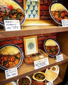 以前、神保町を探索した時に長蛇の列をつくっていたお店「カリーライス専門店エチオピア」今回はラッキーな事に4人しか並んでいなかったので悩む事なく入店!以前も思いましたが、店頭にあるショーケースが目を惹きます。↓