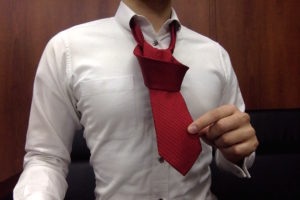 ▼大剣を小剣(ネクタイの細い方)の上に重ねてクロスして下さい。