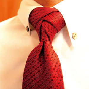 見た目はそこまでカッコ良くありませんが、ちょっと変わったネクタイの結び方をされたいときなどにオススメです。メロビンジアンノットと大剣・小剣の位置が逆になっている結び方です。
