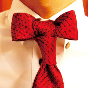 蝶ネクタイを忘れたとき、この結び方と首元浅いセーターがあれば乗り切れる…かも。笑