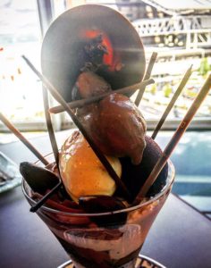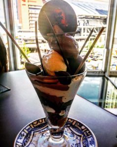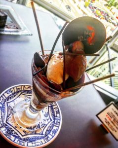 他のアイスも濃厚ですし、その下に敷かれている「栗」アイスも濃厚で美味しいですね。上に刺さっている細いチョコも濃厚なので、全体的に濃いめに作られている様です!たまたまですが、別発注のスパークリングドリンク「ショコラ ネスパ!?」と相性が良い気がしますねd( ̄  ̄)
